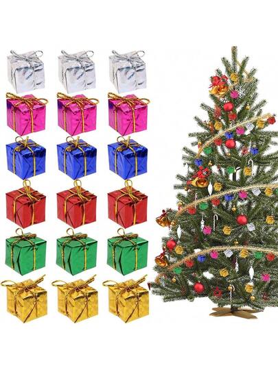 24/36/48 件圣诞树迷你装饰闪亮金属泡沫礼品盒悬挂装饰派对礼物适用于圣诞树婚礼派对节日、圣诞节 - 彩色 - 查看 1