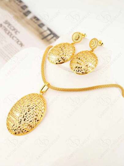 24K 镀金 2 件时尚蜘蛛网图案镂空女士首饰套装,适合派对、婚礼、周年纪念、日常佩戴 - 金色 - 查看 1