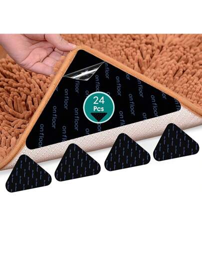 24片装地毯防滑垫,适用于硬木、瓷砖、大理石地板,双面粘性地毯固定器可保持地毯边缘平整,可移除地毯胶带,适用于地毯区域。 - 黑色 - 查看 7