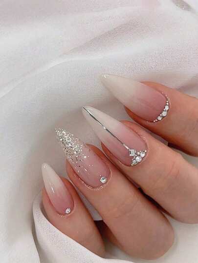 24入組閃亮杏仁形指甲亮片,時尚優雅的設計,適合女性,派對、舞蹈和日常穿著壓克力甲指甲用品 - 彩色 - 查看 1