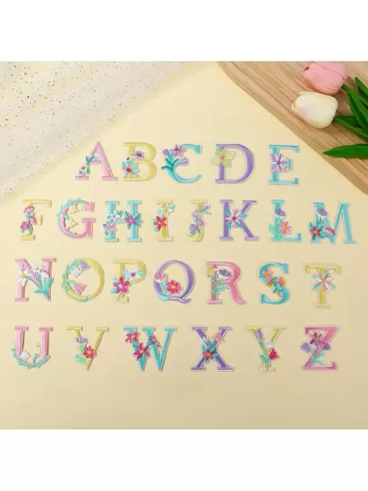 26 件花朵和字母設計布料貼紙,適用於服裝、浪漫風格配件 - 彩色 - 查看 1