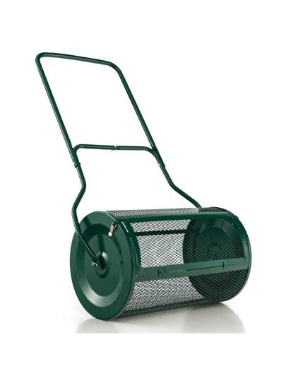 27-Inch Compost Spreader, Peat Moss Spreader With Upgrade U-Shaped Handle, Side Latches, Metal Mesh Roller For Topdressing & Seedling - 綠色 - 查看 1