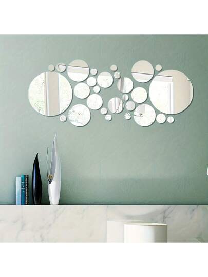 28张圆形镜子墙贴亚克力镜面墙贴自粘镜面贴客厅沙发背景墙浴室家居装饰厕所贴纸 - 銀色 - 查看 8