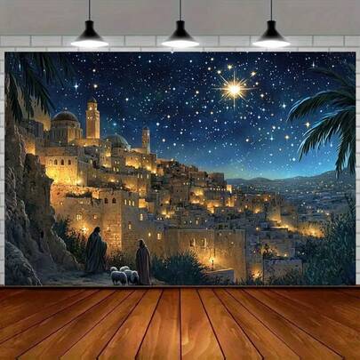 6. 2D圣诞夜空与伯利恒剪影背景,完美营造节日神圣氛围,点亮您的圣诞装饰,让每一次家庭聚会都更加温馨舒适。