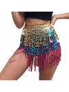 肚皮舞服装闪光亮片流苏裙,时尚舞蹈腰带裙肚皮舞