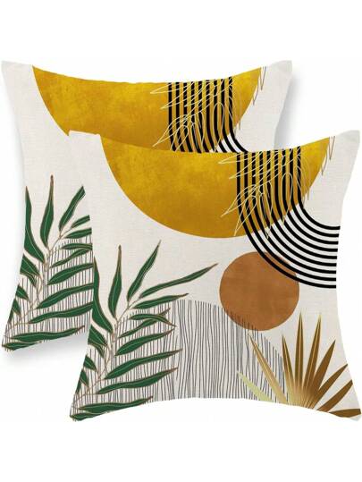 2 件波西米亚枕套抱枕橙色太阳绿热带树叶装饰中世纪枕套户外装饰波西米亚靠垫套适用于沙发家居,单面无枕芯