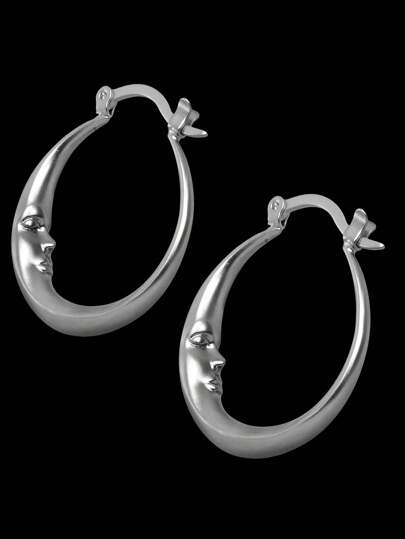 2 件个性化环形耳环月亮形状锌合金耳环珠宝女士礼物 - 銀色 - 查看 5