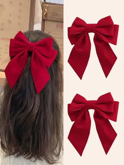 2个大号蝴蝶结发夹 - 女孩和青少年蝴蝶结发夹,鳄鱼夹,丝滑蝴蝶结发饰,适合节日、新年、情人节、返校季佩戴 - 紅色 - 查看 2