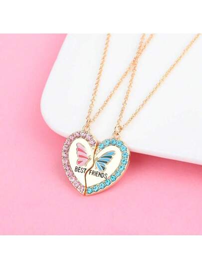 2 件/套可爱蝴蝶心形吊坠项链适合女孩友谊 BFF 项链最佳朋友珠宝礼物情人节、妈妈、母亲、母亲节、礼物 - 金色 - 查看 11
