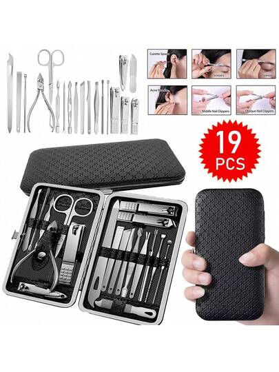 2Set (19pcs/Set) TOE NAIL CLIPPERS CUTTER SET PODIATRY PEDICURE KIT HEAVY DUTY FOR THICK NAILS - 黑色 - 查看 1