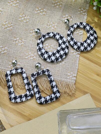 HANQI 2對/套時尚鏤空圓形和矩形耳墜適合女士日常裝飾 - 彩色 - 查看 4