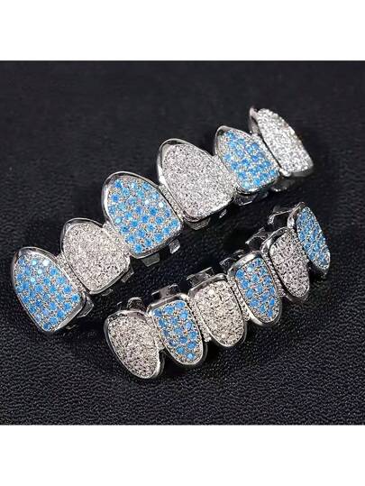 2 件/1 件铜水钻牙套,个性化嘻哈风格男女通用牙齿服装,适合万圣节、派对、角色扮演 - 彩色 - 查看 1