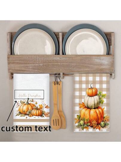 2 件/2 套南瓜设计超柔软纤维厨房洗碗巾、季节性厨房和餐桌装饰餐巾/毛巾、家居装饰、完美的乔迁礼物 - 彩色 - 查看 1