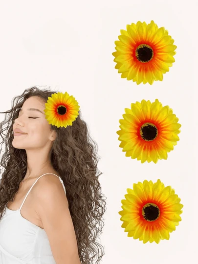 2件/3件套女士休闲度假波西米亚向日葵发夹、爪夹、发夹、发夹、发夹 - 黃色 - 查看 1