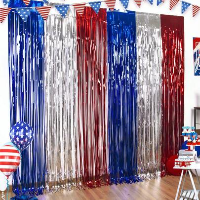 2件装7月4日红白蓝爱国主题流苏帘,金属箔材质,适用于爱国主义派对和退伍军人节装饰