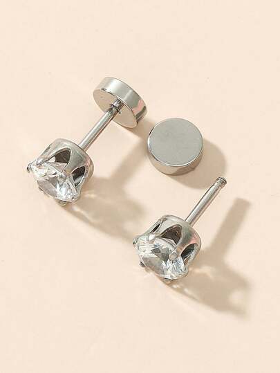 2颗6毫米锆石圆形不锈钢耳钉,简约时尚,男女皆宜,日常佩戴