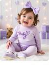 柔和薰衣草色,可爱爱心印花,女婴休闲简约柔软厚实舒适圆领长袖卫衣和打底裤套装,适合秋冬季日常穿着、居家、舒适季节、秋冬穿搭、轻松舒适、女婴秋冬叠穿、时尚女婴、休闲装、女婴图案服装、秋冬服装、圣诞节服装、别致秋季、秋季新款、返校季、冬季时尚