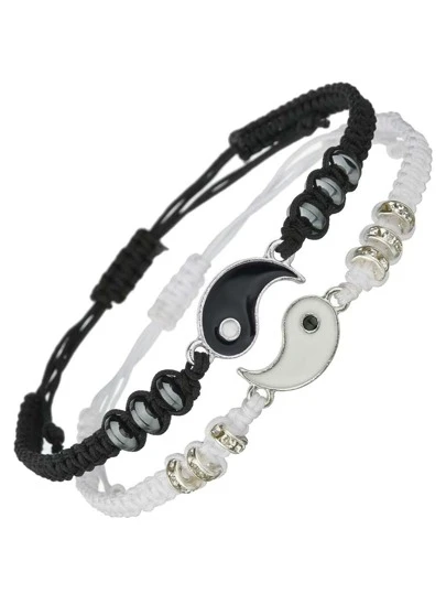 2 件最佳朋友手鍊適用於 2 條配對陰陽可調節繩索手鍊適合友誼關係男朋友女朋友 - 黑與白 - 查看 2