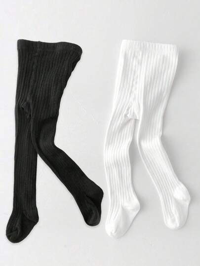 儿童黑白条纹紧身裤/打底裤 2 件装 - 黑與白 - 查看 2