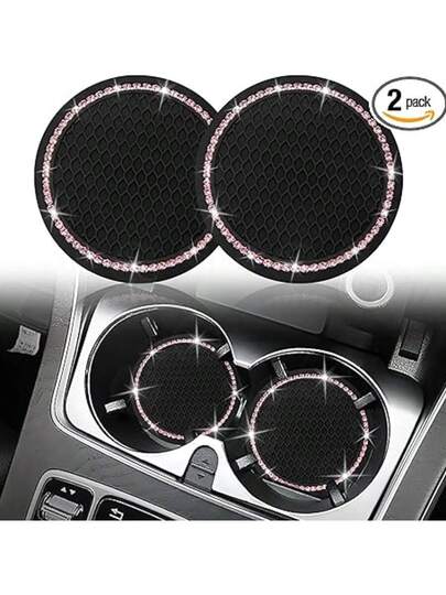 2件装汽车杯垫圆形钻石防滑硅胶杯垫 - 粉色 - 查看 2
