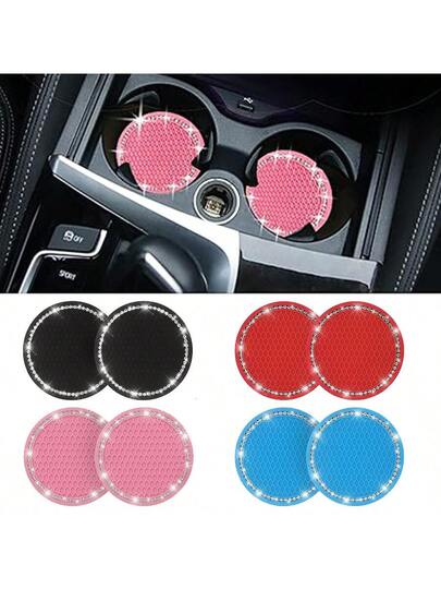 2 件装汽车杯架硅胶防滑垫,汽车闪亮杯架杯垫,车内储物垫,适用于轿车、SUV - 有黑色、粉色、蓝色可选 - 彩色 - 查看 10