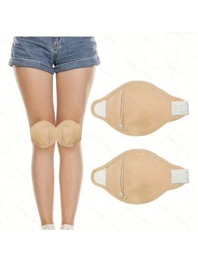 2 件装蓖麻油护膝,可清洗、可重复使用的护膝套 - 卡其色 - 查看 2
