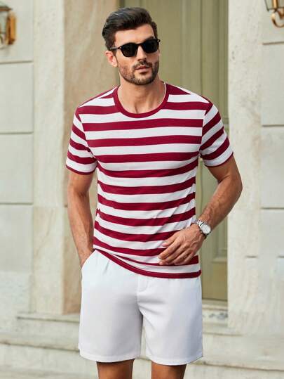 Manfinity VCAY 2 件套男士休闲条纹修身肩部 T 恤套装男士夏季服装 - 彩色 - 查看 1