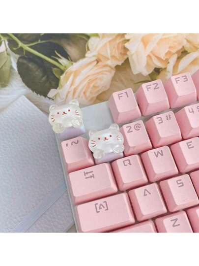 2 个猫形可爱键帽,适用于带 Cherry MX 开关的机械键盘 - 白色 - 查看 1