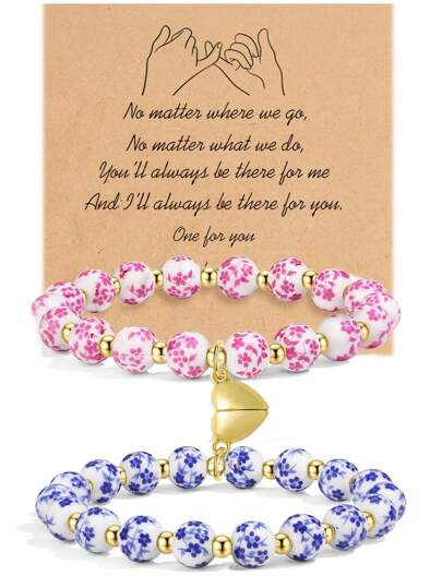 2 件青瓷情侣手链套装,男女皆宜,时尚精致的中国风情侣手链套装,生日礼物,情侣珠宝礼物,送给妻子的礼物,送给最爱的人的礼物 - 金色 - 查看 2