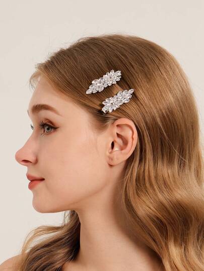 2 件水晶锆石花卉图案发夹 - 銀色 - 查看 6