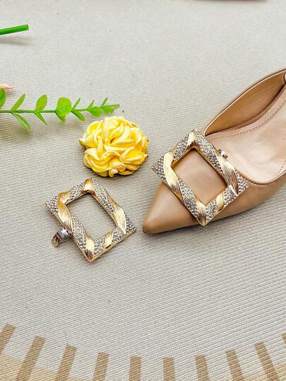 2 件可拆卸水晶鞋夹,鞋子配件 DIY 适用于办公室、婚礼派对、各种鞋子、包包、帽子、衣服装饰、女士鞋子饰品 - 金色 - 查看 4