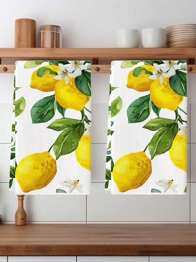 2条柠檬图案超强吸水超细纤维洗碗布,柔软速干,适用于烘焙、烹饪和清洁,适用于家庭厨房和餐厅,厨房用品 - 黃色 - 查看 1