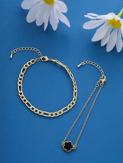 2入組優雅精緻五瓣花銅手鍊,適合日常佩戴、約會及感恩節、聖誕節禮物