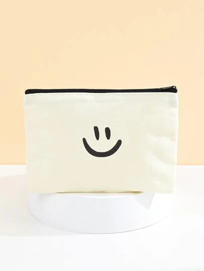 2 件时尚简约帆布拉链化妆包,适用于化妆品、护肤品和美容工具、旅行收纳包 - 米色 - 查看 1