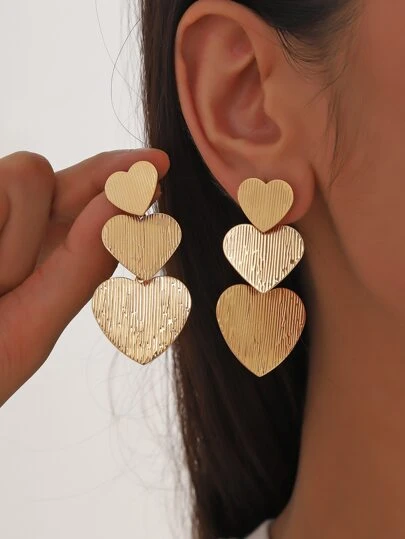2入組時尚多層垂直條紋&心形合金耳環,極簡主義金屬感歐美耳飾