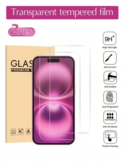 2片装全屏透明钢化玻璃屏幕保护膜,兼容 17/17 Pro/17 Pro Max/17 Air/16 Pro Max/16/16e/14/15 Pro Max/13/12/11,高清防刮钢化玻璃 - 無色 - 查看 16
