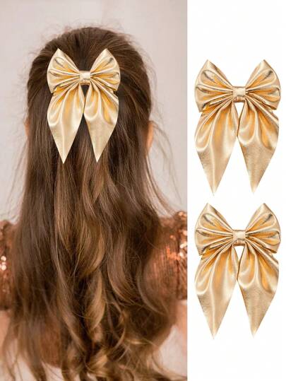 2个装女童金色蝴蝶结发夹,甜美可爱优雅时尚发饰,送给女孩的礼物,适合上学和日常使用