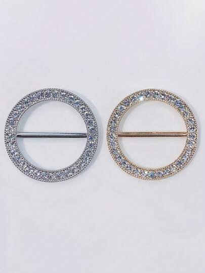 2个金色/银色水钻T恤夹,时尚水钻丝巾夹,优雅丝巾腰带扣,适用于连衣裙 - 彩色 - 查看 1