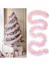 粉色圣诞金属丝花环,闪亮装饰,圣诞树挂饰,生日、婚礼、派对、复活节、节日庆典室内外家居圣诞装饰用品,楼梯扶手室内外装饰品,家居装饰,圣诞装饰,房间装饰,冬季圣诞装饰,家居圣诞礼物,圣诞装饰