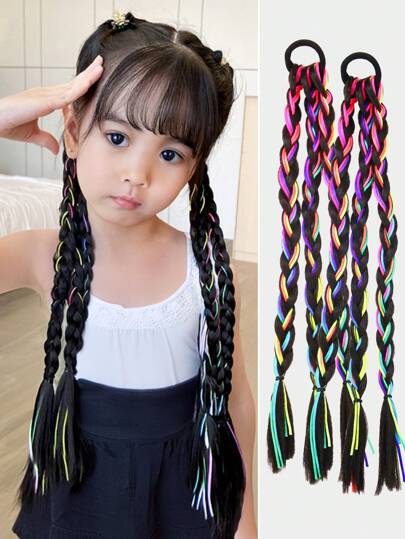 2 件装儿童女孩方形辫子假发,加厚渐变色编织接发,适合日常使用 - 彩色 - 查看 1