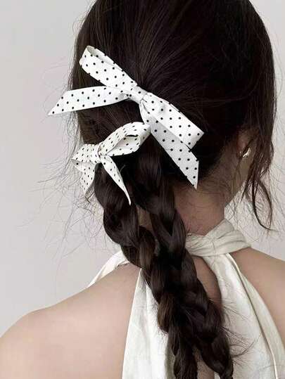 2 件女士白色波尔卡圆点蝴蝶结发夹,甜美可爱波尔卡圆点蝴蝶结发夹,日常发饰,爪夹,鳄鱼发夹,发夹,发夹,发夹 - 彩色 - 查看 5