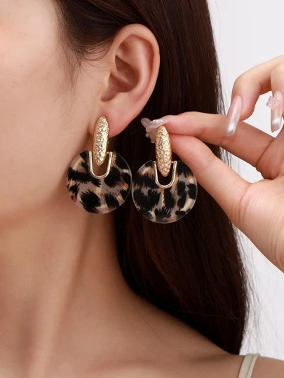 2入組豹紋圖案圓形耳墜 - 金黃色 - 查看 2