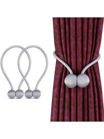 2个磁性窗帘绑带,独立窗帘固定器,适用于卧室和客厅 - 非羽毛、非电动布艺窗帘配件,窗帘绑带夹磁性扣磁性编织挂钩