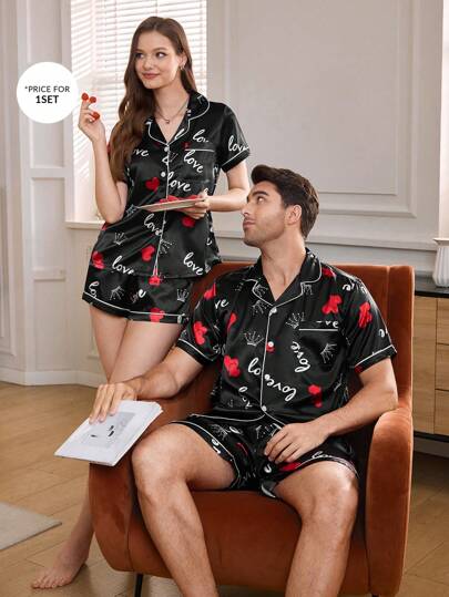 两件套男士睡衣套装,心形和皇冠印花 - 彩色 - 查看 1