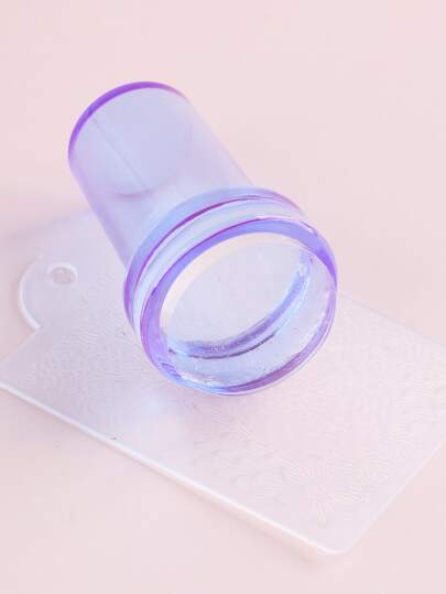 FULL BEAUTY 2入組美甲印章和刮刀套裝便攜小矽膠果凍壓模套件指甲沖壓盤子拋光印花轉移法語美甲工具 - 紫色 - 查看 1