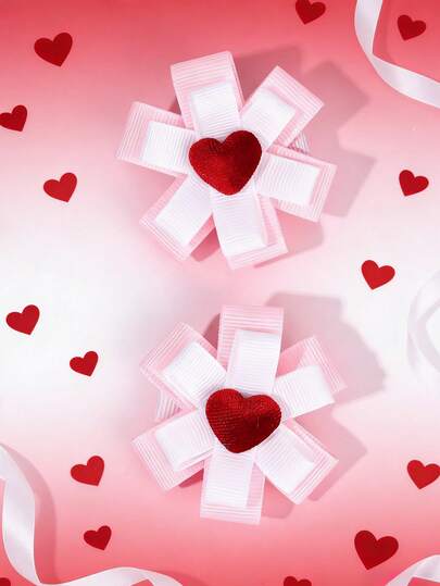 2个装新年2026及情人节女孩发夹,粉红色爱心发卡,压缩夹,花朵发夹,甜美公主风发饰,女孩礼物,春季,日常佩戴