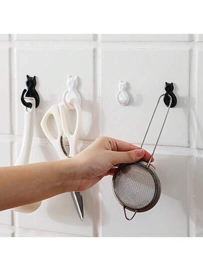 2入組無需鑽孔的貓形自粘掛鉤,透明強力粘貼牆掛,創意卡通廚房/浴室門掛鉤