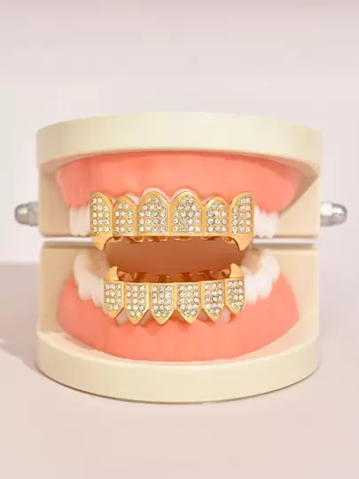 2入組水鑽裝飾金屬牙套配件 - 金黃色 - 查看 2