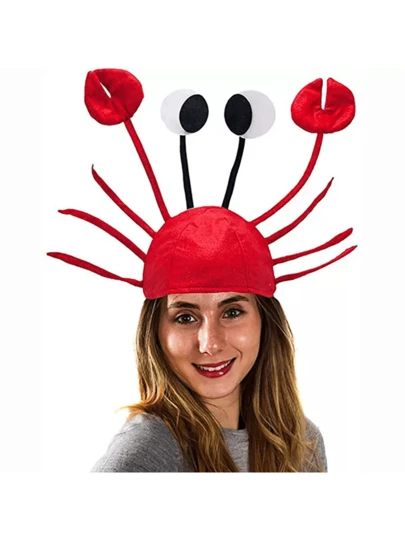 2 件/套,1 件可爱有趣的螃蟹帽,男女通用,礼物,适合万圣节、节日派对、学校、趣味活动 - 彩色 - 查看 1