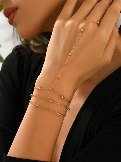 2件套经典金色串珠链条手链,优雅女士饰品,适合日常佩戴和派对场合,手工制作,链长可定制